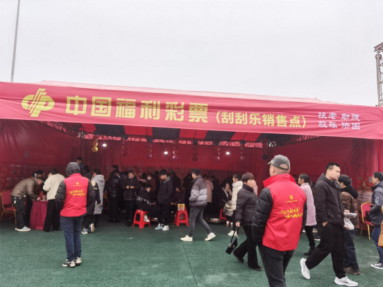 2月4日—2月6日,元宵节期间,桃江县福彩中心组织工作人员和部分投注站业主,在紫金湾和人流量较大的金盆广场设立以福彩刮刮乐票种展示、宣传、销售为一体的销售点。