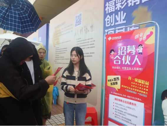 活动展位还设置了醒目的主题展板、招募海报,对招募创业对象条件、政策支持和创业服务流程进行了介绍,让求职者一眼就能轻松了解,吸引了众多人前来咨询。本次活动由省人社厅、省民政厅、省退役军人事务厅、省总工会、省工商联、衡阳市人民政府主办,省就业服务中心、衡阳市人社局、衡阳市民政局、衡阳市退役军人事务局、衡阳市总工会、衡阳市工商联承办,旨在贯彻党中央、国务院关于稳就业和促进民营经济发展壮大的决策部署,落实“两个毫不动摇”,推进高质量充分就业,帮助各类企业招工稳岗,支持各类劳动者求职就业。为进一步推动大学生创业,衡阳市人力资源和社会保障局、衡阳市民政局共建衡阳市福彩销售创业项目库,第二批在衡阳市开设50个福利彩票销售店,特招募有创业意愿的高校毕业生参与创办网点,为全市福彩事业贡献力量。