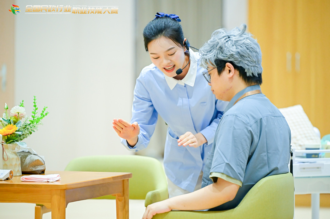 此次养老护理员赛项与以往比赛不同的是,心理关怀模块首次进行独立考核,这就要求护理员的服务更暖心、更贴心。