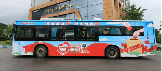 《福彩3D 善行直通车》第二季爱心公益大巴全新亮相,以蓝天白云为底色,加入红丝带、爱心等元素,旨在传达团结社会各界爱心人士“为社会造福,为生活添彩”的公益使命。车身标志性logo“福彩3D 善行直通车”大气亮眼,车内公益海报、靠背、扶手等处都可见暖心的公益元素。志愿者们置身其间,处处都能感受到公益的力量。