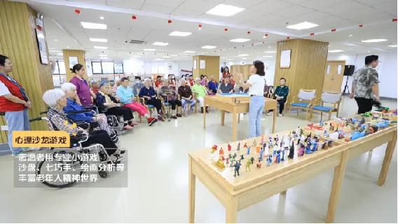此次活动的志愿者中有一部分是来自博臣心理咨询的心理咨询师们。作为“心灵守护者”的她们,在活动中积极发挥作为心理咨询师的优势,用专业道具——沙盘和老人们开展了互动,通过艺术表现和创造力走进老人们内心。此外,志愿者还策划了七巧手、绘画分析、击鼓传花等小游戏,与老人们开展互动,让老人们感受到社会的关注与温暖。