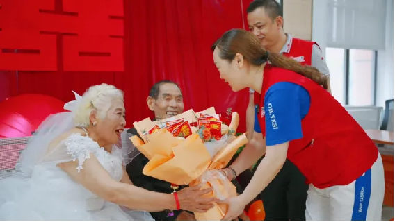 在志愿者的精心装扮下,“新娘子”穿上婚纱,戴上头纱,“新郎”穿上西服,打上领带,他们仿佛又回到了新婚的时候。拍摄中,他们相互依偎,深情对视,志愿者则用照片定格美好瞬间。这些照片不仅是他们幸福时刻的记录,更是多年来相濡以沫的见证,传递着正确的爱情观和婚姻观。
