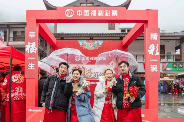 (湖南福彩亮相国潮集体婚礼,推动“福彩+文旅”融合发展。)
