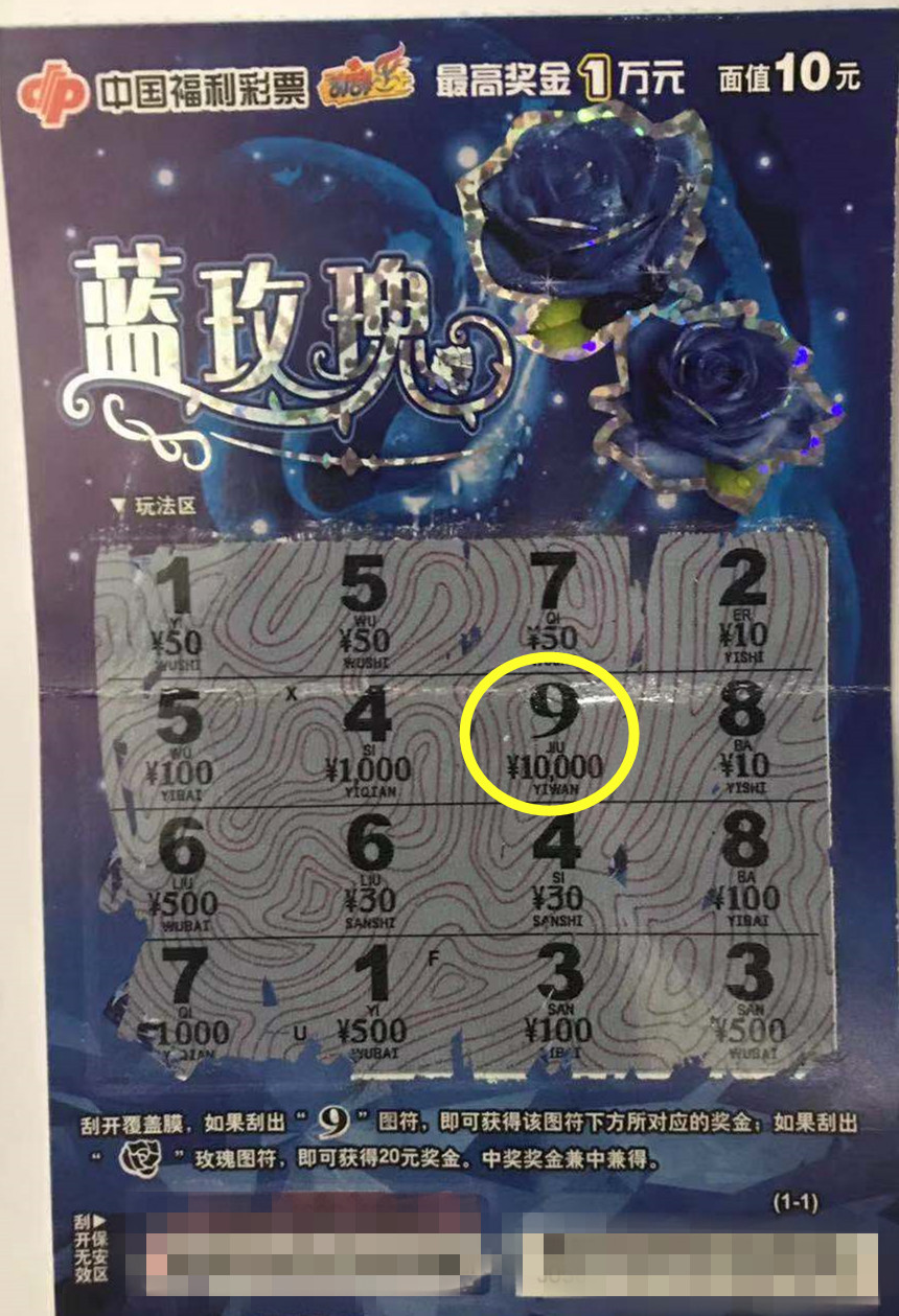 面值10元的刮刮乐“蓝玫瑰”,是以爱情为题材的彩票。票面背景为深蓝色,衬托着一朵朵精致的蓝玫瑰,极为适合年轻女性群体购买,玩法简单易懂,中奖奖金兼中兼得。一等奖10000元。王慧婷