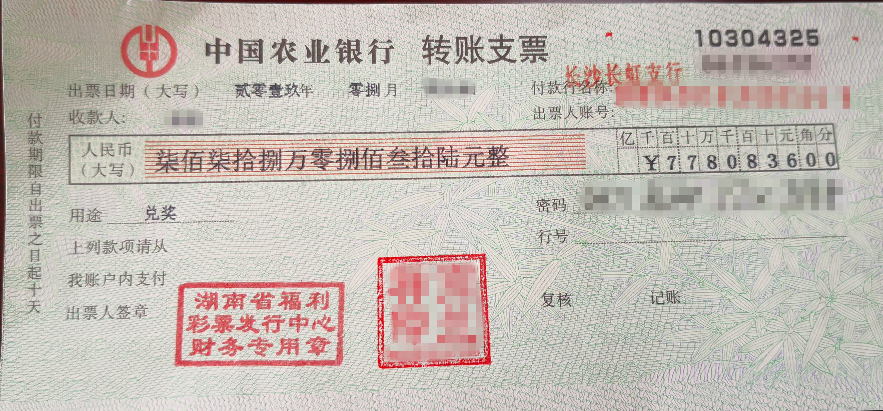 8月22日晚,福彩双色球第2019098期开奖,开出红球号码:03、11、12、14、17、26,开出蓝球:09。当期全国共中出一等奖4注,单注奖金953万余元,我省长沙浏阳彩民喜中1注头奖,中奖福地为:浏阳市北盛镇汽车站内43017104号福彩投注站。 近日,彩民杨先生满脸堆笑地来到省福彩中心,领取了属于自己的大奖。