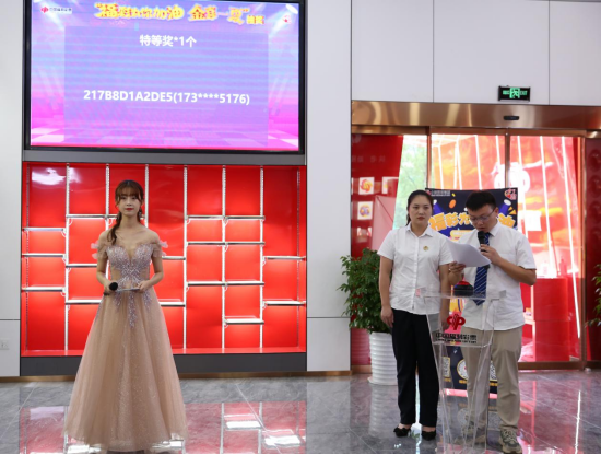 9月22日上午10:28,在长沙市天心区芙蓉中路汇金国际“福潮•宝藏店”,省福彩中心对在“福彩电脑票油卡大派送”活动中,获得“金喜一夏”抽奖机会的彩民进行抽奖,并通过福彩抖音、快手、微信视频号和福彩一体机进行了现场直播。活动现场气氛热烈,线上参与收看人数共有3020人,最终有80名幸运彩民,各中得5克金豆1颗;有30名幸运彩民,各中得10克金条1根;有5名幸运彩民,各中得50克金条1根;有1名手机号码为173****5176的幸运彩民,中得终极大奖200克金条1根。