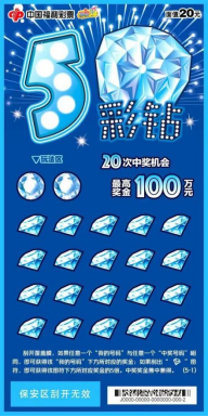 “5彩钻”面值20元,返奖率65%,每张彩票共20次中奖机会,最高奖金100万元。