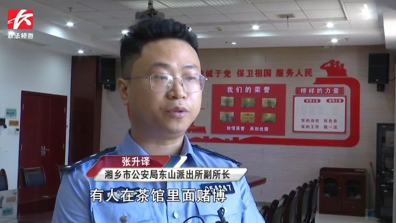 湘乡市公安局东山派出所副所长张升译:“当时我们接到群众举报,有人在茶馆里赌博。赶到现场之后发现现场有11人。经查证,11个人均参与地下六合彩购买。对这11个人处罚后,挖出一条刑事案件线索。”
