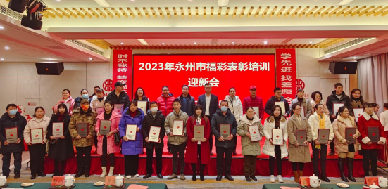 1月28日上午,永州市福彩中心召开2023年度表彰培训迎新会。市民政局党组书记姜斌在会上致辞,局党组成员、副局长黄建军宣读表彰名单,市福彩中心主任聂少英主持会议。中心全体员工及各市县福彩中心主任、市场管理员和年销量300万以上明星投注站业主、星级投注站业主参加。