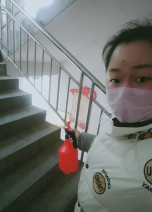 乡镇社工在咨询劝导点守卡和办公区域消毒