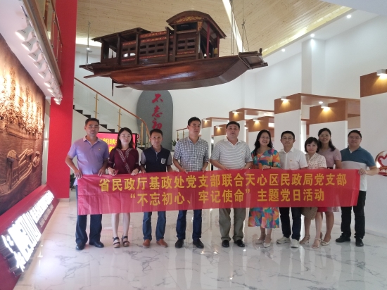近日,湖南省民政厅基层政权建设和社区治理处党支部联合天心区民政局党支部开展“不忘初心、牢记使命”主题党日活动。省民政厅基政处党支部全体党员、天心区民政局机关全体党员一同参加。