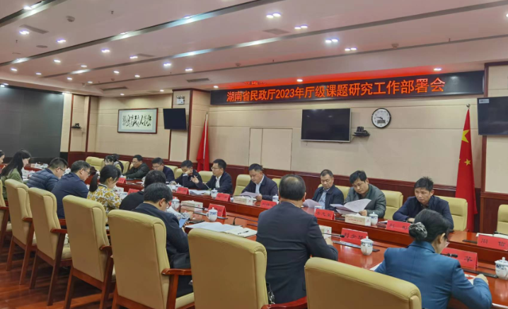 3月9日,湖南省民政厅召开2023年厅级课题研究工作部署会。中南大学、湖南大学、湖南师范大学、湘潭大学等课题研究承担单位的专家学者,厅机关处室局课题联络员参加会议。