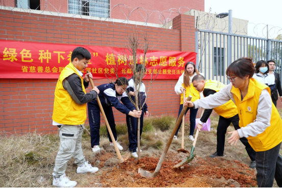 志愿者们有序分工合作种植树苗,个个热情洋溢、干劲十足。或挥锹铲土、或挖抗扶苗、或填土浇水……经过“黄马甲”“红马甲”们的辛勤劳动,一株株树苗在和煦的微风中萌发盎然生机。