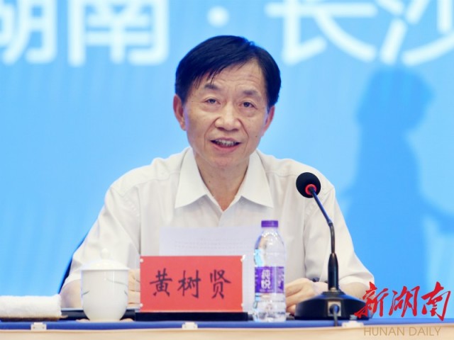 (黄树贤出席会议并讲话。湖南日报·新湖南客户端记者 赵持 摄)