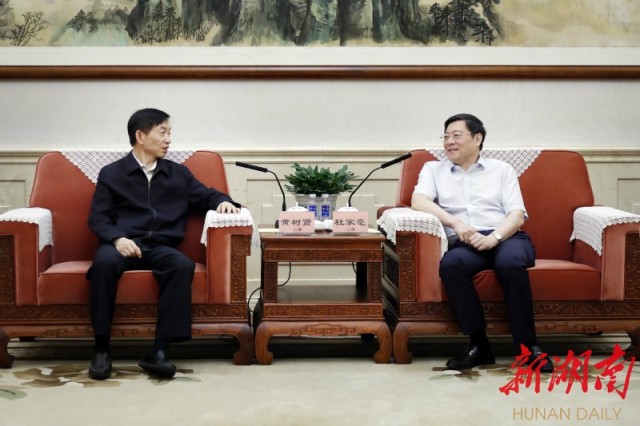(6月19日晚上,省委书记杜家毫,省委副书记、省长许达哲在长沙会见了民政部党组书记、部长黄树贤一行。湖南日报·新湖南客户端记者 罗新国 摄)
