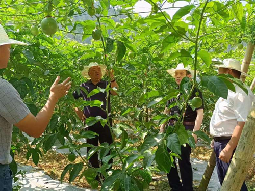 8月2日上午,张自银副厅长头顶烈日,冒着38度酷暑,在城步苗族自治县副县长杨辉刚陪同下,查看了蓬瀛村百香果产业基地,详细了解百香果生长习性、销售渠道、农民收入以及与脱贫返贫监测户利益链接情况等,充分肯定了该村通过产业发展带动更多的村民致富,实现乡村振兴工作。在红豆杉党性教育广场,张自银副厅长仔细听取了1934年中央红军和红六军团2次路过蓬瀛村的经过,沿红军路观看红色文化建设情况。在村部召开座谈会,汀坪乡乡长龙开余汇报乡新时代文明实践所工作情况及工作建议,蓬瀛村支部书记袁能斌介绍村情,重点汇报新时代文明实践工作站工作开展情况及打算;省老区办主任王学强通报了这次调研的目的,就蓬瀛村新时代文明实践结对活动谈了认识。