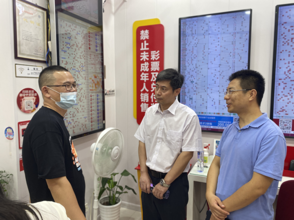 调研中,王希春一行先后来到长沙汇金国际、茶子山福潮店等销售网点,与工作人员深入交流,实地了解湖南福彩渠道建设和视频票销售厅转型发展等情况。