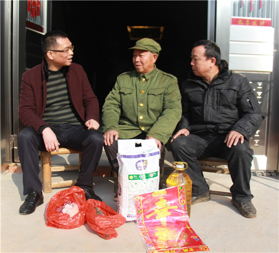 县民政局慰问组在福田铺乡、岭坡乡民政办工作人员的陪同下,走访了部分困难群众,每到一处都和群众亲切交谈,询问他们有那些意见和建议,受拜访的困难户们感激地说:我们在村里吃的、穿的、住的,基本上都不缺,生活基本上没什么问题,我们要感谢党,感谢政府对我们的关怀、关心。最后,慰问组给每位困难户发放了一壶油、一袋米、一块肉、一条魚、一幅春联,希望他们过一个欢乐祥和的节日。