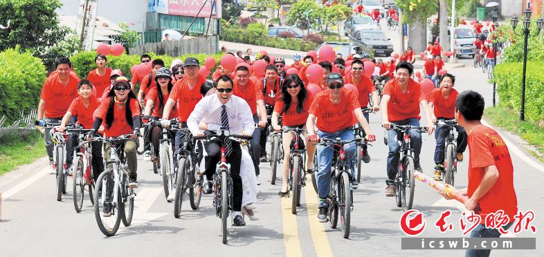 图为在浏阳城区举办的一场自行车婚礼。长沙晚报通讯员 刘建国 摄
