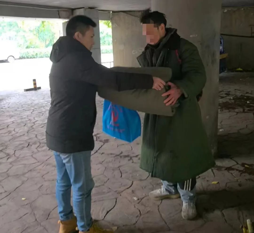 雨花区生活无着人员救助站工作人员前往生活无着流浪人员较为集中的地方,为流浪人员送上冬衣、冬被等御寒物资,嘱咐他们做好保暖。为做到“发现一例,救助一例”,区生活无着人员救助站还向不愿到救助站接受救助的生活无着流浪人员发放救助引导卡,做好后续定期跟踪劝导,并留存好相关的救助信息和资料。