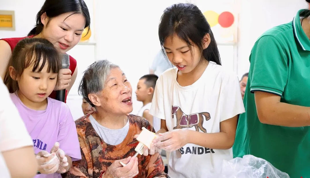 老人们和孩子们一起参与了各种趣味活动。他们共同制作月饼,从揉面、包馅到压模,每一个步骤都充满了乐趣。孩子们认真地向老人学习制作技巧,老人们也耐心地指导他们,场面十分温馨。一位老人感慨地说:“看着这些孩子们充满朝气的脸庞,仿佛自己也年轻了好几岁。能和他们一起做月饼,提前度过这个中秋佳节,心里别提多温暖了。”此外,孩子们表演了唱歌、跳舞等节目,还送给老人们自己画的关于中秋节的美术作品。“这些孩子就像小天使一样,给我们带来了无尽的欢乐。”另一位老人开心地说道。