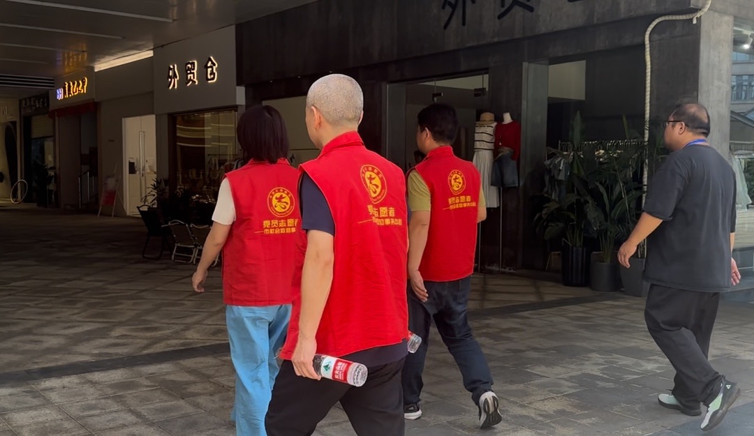 中午12时,地表温度突破40℃。水星楼商圈里,救助工作人员许为帅和滕建宇发现困难群众躲在仓库里。“大爷,给您带了水和食物,还有衣服。”他们递上物资,一边询问对方情况。这样的紧急救助,在高温时段几乎每天都在上演。