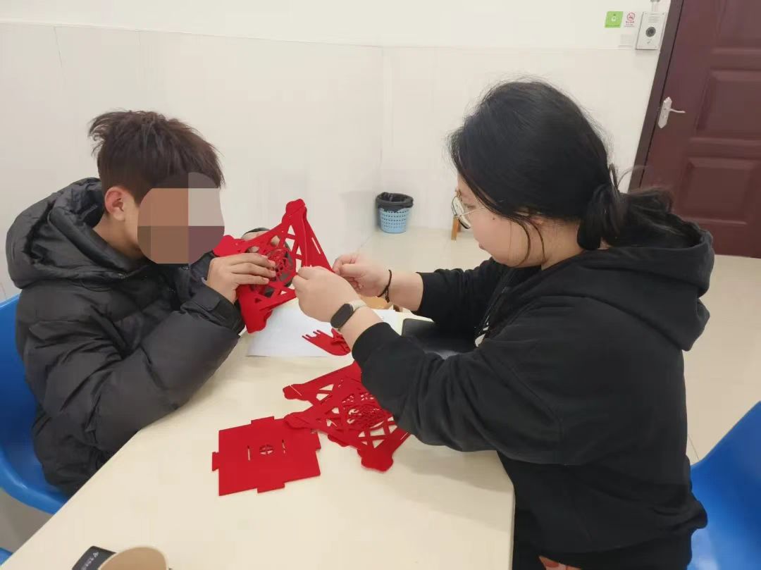“先把骨架撑起来,再穿上中国结和流苏………”在活动室内,社工正耐心指导受助人员制作手工灯笼。有的受助人员是第一次动手制作,动作虽显生疏却充满热情;有的则主动当起“帮手”,互相协作完成作品。一盏盏红彤彤的灯笼,点亮的是大家对新年的期盼。