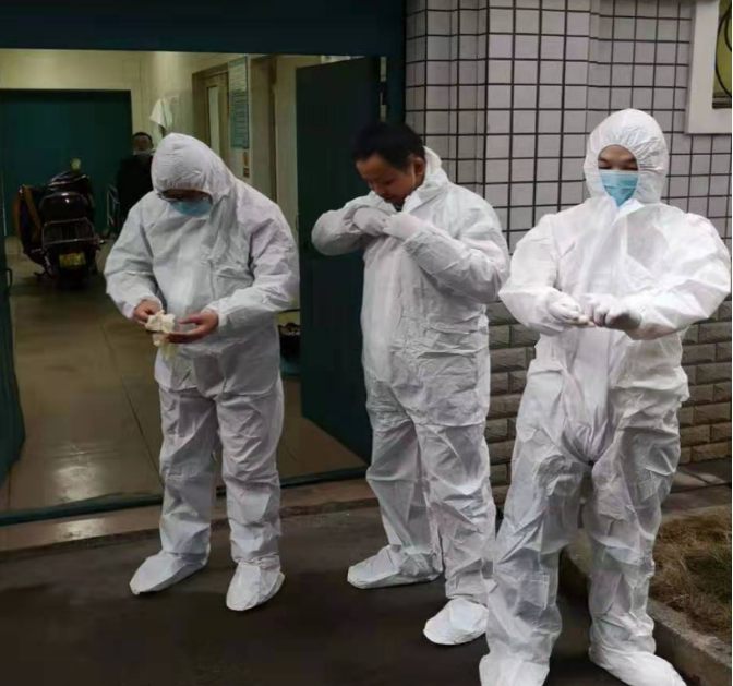 2月2日下午16时许,业务部接到家属电话,告知家属刘衡阳死亡,需要马上火化。疫情当前,市场部石鼓站的王健生、戴伟接到调度,二话没说,就“全副武装”第一时间赶至家属家中,准备开始收殓工作。这时家属主动提出,刘衡阳生前有咳嗽发热症状,是不是感染新型冠状病毒感……现场的空气一下紧张凝固起来,其实,在赶赴的途中王健生和戴伟就已做好了心理准备,此时,他们一边安抚丧属,劝导家属不要慌张,及时做好防护措施,一边将情况马上向馆领导报告,引起了市民政局防控领导小组的高度重视,市政府副市长杨龙金高度关注作出重要批示,市民政局党委书记局长周小风、分管副局长邓明君亲自过问情况,全程参与调度处理,殡仪馆主要负责人亲临现场指导工作,积极配合家属与市110、120、市疾控中心、政府热线12345联系善后。晚上23时许,政府各职能部门抵达现现场,对刘衡阳遗体进行综合检测,确认为正常病逝,而非病毒感染,大家悬着的心总算踏实了。接着,王健生和戴伟两人用心将遗体从七楼通过从狭窄的楼道抬运下来,每当他们遇到拐角时,更是小心翼翼护送,生怕遗体有丝毫磕磕碰碰,直到稳稳妥妥抵达一楼,冒着大雨继续运到殡仪服务车中时,不觉身上已浑然湿透……将近凌晨一点到馆,为了让家属配合疫情防控,他们耐心劝导家属,将遗体直接妥善处理。