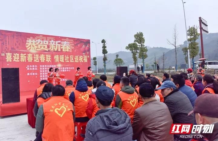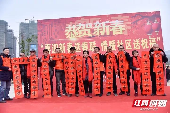 红网时刻张家界1月19日讯(记者 张潘)1月19日,在新春佳节来临之际,张家界市民政局联合永定区沙堤办事处莲花社区、市龙门社会工作服务中心、市烟草局、市移动公司、张旅集团、永定区沙堤办事处、长沙银行张家界分行,走进永定区沙堤办事处莲花社区,开展恭贺新春“喜迎新春送春年情暖社区送祝福”为主题活动,为社区群众送上手写春联及新春祝福。