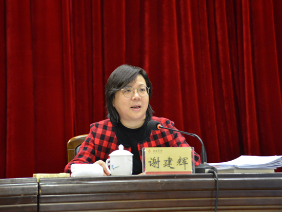 红网长沙2月13日讯(时刻新闻记者 廖洁 通讯员 吴增兵 包宋德)今天,全省民政工作会议在长沙召开,总结2016年全省民政工作,部署今年重点事项,湖南省副省长谢建辉出席会议并讲话。她要求,要围绕大局思维、人本思维、法治思维、创新思维来谋划民政工作,把民政服务网织得更密、更细、更牢固。