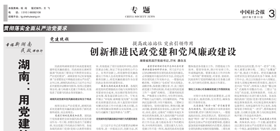 中国社会报推介:湖南用党建筑牢民政事业发展的“根”与“魂”