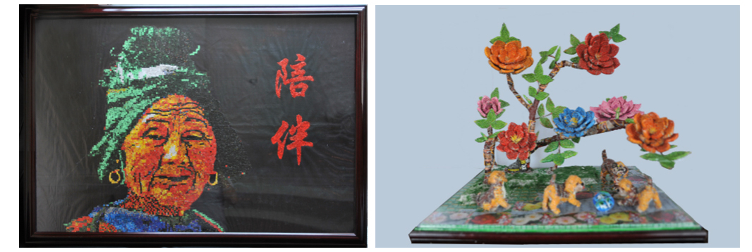 (“红楼梦人物-金陵十二钗”获得平面类作品一等奖) (“祈福侗乡”获得立体类作品一等奖)