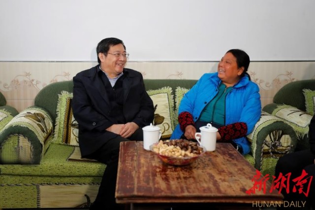 来到慈利县杨家坪村,杜家毫走访慰问了易地搬迁贫困户毛桂浓。了解到毛桂浓因患类风湿关节炎,丧失劳动能力而致贫,杜家毫叮嘱随行省直有关部门负责人,要不断探索完善医疗救助扶贫体系,有效减轻贫困人口常见病、慢性病的看病负担。杜家毫鼓励毛桂浓坚定信心、保重身体,相信有党和政府的帮助、有儿女们的孝顺,日子一定会越过越红火。