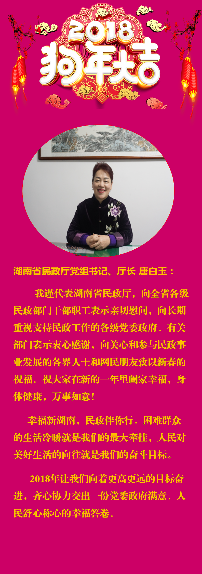 湖南省民政厅党组书记、厅长唐白玉向广大网友拜年