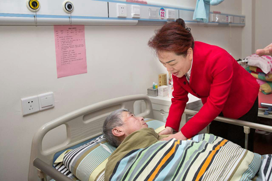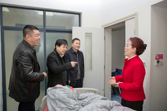 唐白玉厅长还看望慰问了康乃馨老年呵护中心护理区的老人和护理员。了解为老服务、老人饮食和活动开展情况。她还了解护理员的薪资待遇、工作情况以及个人期待,表达了政府对护理员的真切关怀。护理员感激地拉着唐白玉厅长的手说:“感谢政府领导对我们护理员的关爱,我们一定好好干。”
