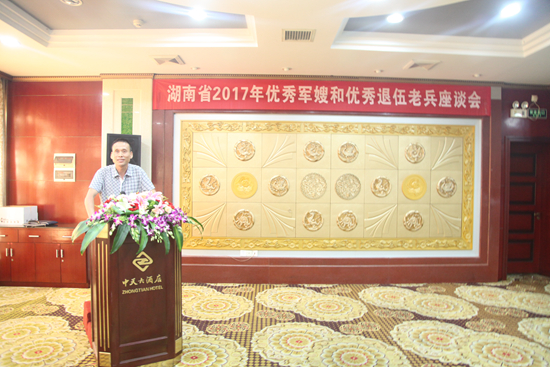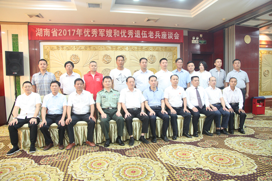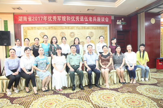 7月24日下午,湖南省双拥工作领导小组办公室举行2017年优秀军嫂和优秀退伍老兵座谈会,对优秀军嫂和优秀退伍老兵进行表彰,有23人获评“优秀军嫂”,19人当选“优秀退伍老兵”。省民政厅副厅长、省双拥工作领导小组办公室主任孙中喜出席座谈会并讲话,省军区政治工作局副主任黄建新宣读《表彰通报》。