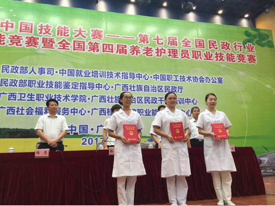 9月7日上午,第七届全国民政行业职业技能竞赛暨全国第四届养老护理员职业技能竞赛在广西南宁落下帷幕,经过四天激烈的比赛,我省参赛选手取得优异成绩。来自长沙市第一福利院郭益芝荣获特等奖、长沙市第二福利院黎芳荣获一等奖、长沙市第一福利院喻尚美荣获二等奖,我省荣获团体二等奖。