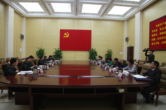 4月19日下午,省民政厅党组书记、厅长唐白玉,党组成员、副厅长孙中喜同志带领厅机关部分处室的负责同志,前往湖南省军区汇报工作。省军区司令员黄跃进、副司令员郭辑山、政治部副主任刘明建和军区机关有关部门负责人参加汇报会。