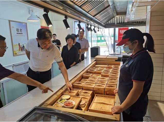 调研组一行先后查看了黑石铺街道养和康养服务中心、桂花坪街道九峰小区优老餐厅、青园街道青园居家养老服务中心等地,了解养老服务中心的功能设置、养老服务内容、收费标准,并详细咨询老人的饮食起居,查看了菜品种类,随后召开了座谈会。