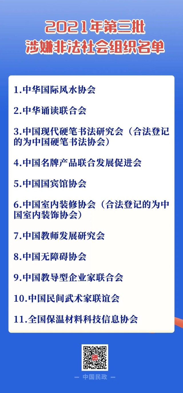 民政部公布2021年第三批涉嫌非法社会组织名单