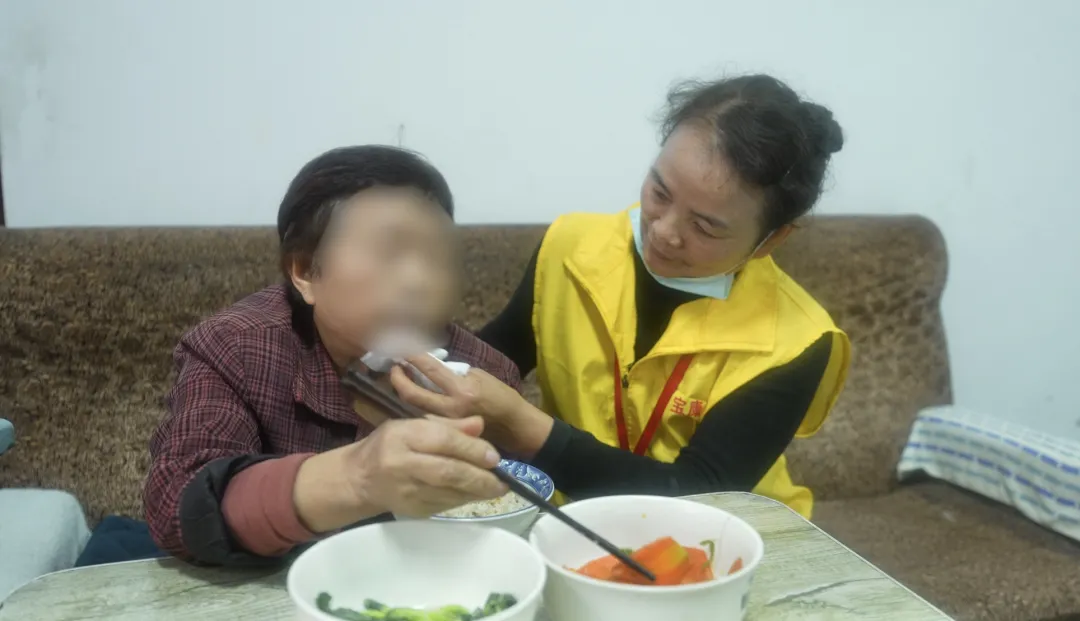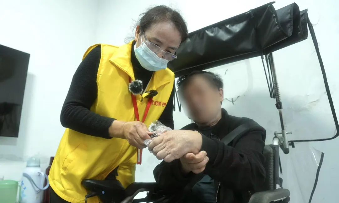 从2023年2月22日起,桃源县民政局委托桃源县宝康智慧养老服务有限公司的护理员王兆英,每周至少两次准时来到郭三枝家中,帮她按摩僵硬的肢体,缓解疼痛;把堆积的脏衣服、脏被子洗得干干净净;定期帮老两口剪头发、剪指甲,做好热腾腾的饭菜端到老人面前,让他们清清爽爽过日子。