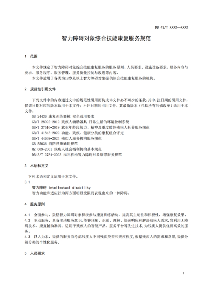 附件:1.《智力障碍对象综合技能康复服务规范》