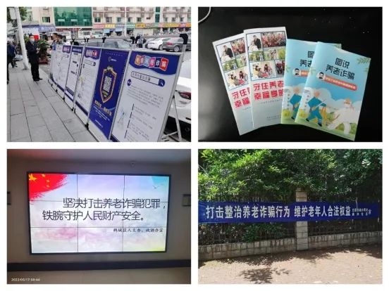 创新宣传方式,强化宣传效果。综合运用电视电台、融媒体中心、电子屏、横幅、标语、橱窗、框架、灯箱、新媒体、短视频、宣传册、宣传单、宣传海报等多种手段,在全区范围形成无死角、全覆盖宣传格局,确保实现打击整治养老诈骗专项行动家喻户晓、人从皆知,提升老年人识诈、防诈、反诈的意识和能力,同时对养老诈骗犯罪起到了良好的震慑作用。在城区范围内,悬挂横幅200余条,投放电子屏500余块,投放框架宣传900余块,制作宣传展架52个,印制宣传单、宣传册、宣传海报共3万余份,制作宣传短视频3个,在各类媒体刊发(转发)宣传稿件50余条,为深入打击整治养老诈骗专项行动提供强有力的舆论支撑和思想保障。