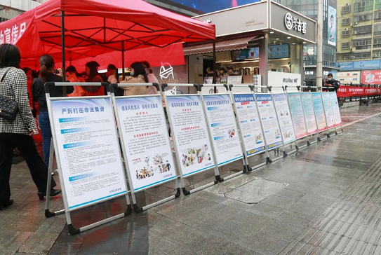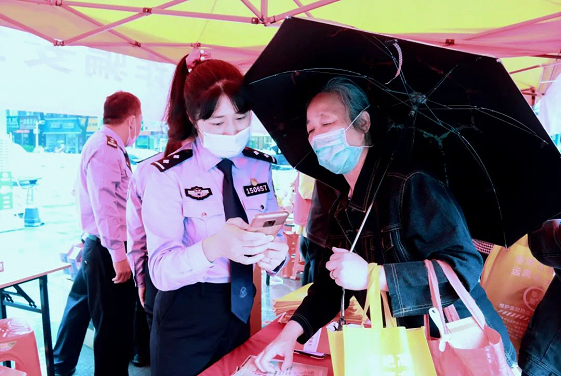 商场显示屏上循环播放着防范养老诈骗及打击非法集资的公益宣传片,以生动形象的画面向来往的人群介绍着养老诈骗的惯用套路和非法集资的常用手段,成为了活动现场一道独特的风景;社区干部组织老年朋友们一同观看防范养老诈骗的动画视频,介绍关于养老诈骗的典型案例事例,传授识破骗局的方法办法。在各乡镇街道宣传日活动现场,音响里的提示声和工作人员的讲解声交织在一起,构成了一首宣传曲。