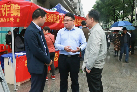 区委常委、政法委书记李治平莅临各乡镇街道活动现场进行了指导,查看了宣传教育内容,询问了组织开展情况,并在活动主现场亲切参与到宣传活动中。“老人家,警惕养老诈骗,一定要守护好自己的钱袋子!”李治平边发放宣传物资边亲切嘱咐道。