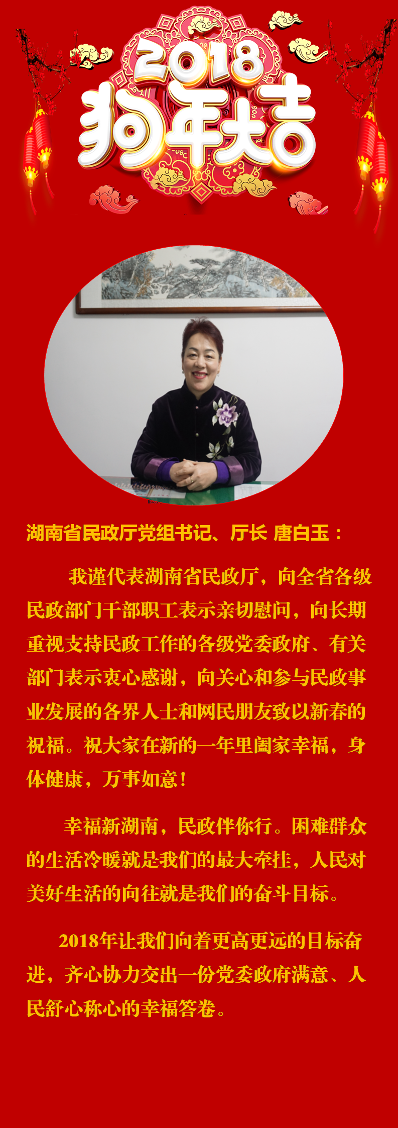 湖南省民政厅党组书记、厅长唐白玉向广大网友拜年:幸福新湖南 民政伴你行