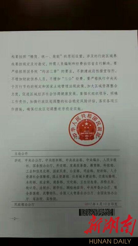 据悉,民政部要求,撤县设市各项工作要深入贯彻党的十八大和十八届三中、四中、五中、六中全会及中央城镇化工作会议、中央城市工作会议精神,认真落实创新、协调、绿色、开放、共享的发展理念,尊重和顺应城市发展规律,坚持经济、社会、人口、环境和资源相协调的可持续发展战略,统筹做好城乡规划、建设和管理,提高新型城镇化质量和水平,增强城市综合承载能力。涉及的各类机构要按照“精简、统一、效能”的原则设置,涉及的行政区域界线要按规定及时勘定,所需人员编制和经费由湖南省自行解决。要严格按照国务院“约法三章”的要求,不新建政府性楼堂馆所,不增加财政供养人员,不增加“三公”经费。要严格执行中央关于厉行节约的规定和国家土地管理法规政策,加大区域资源整合力度,促进区域经济社会协调健康发展。要强化组织领导,明确工作责任,加强行政区划调整的社会稳定风险评估,落实各项工作措施,确保行政区划调整有序稳妥实施。
