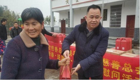 图为张勇同志为贫困户发放新春礼包
