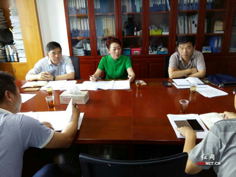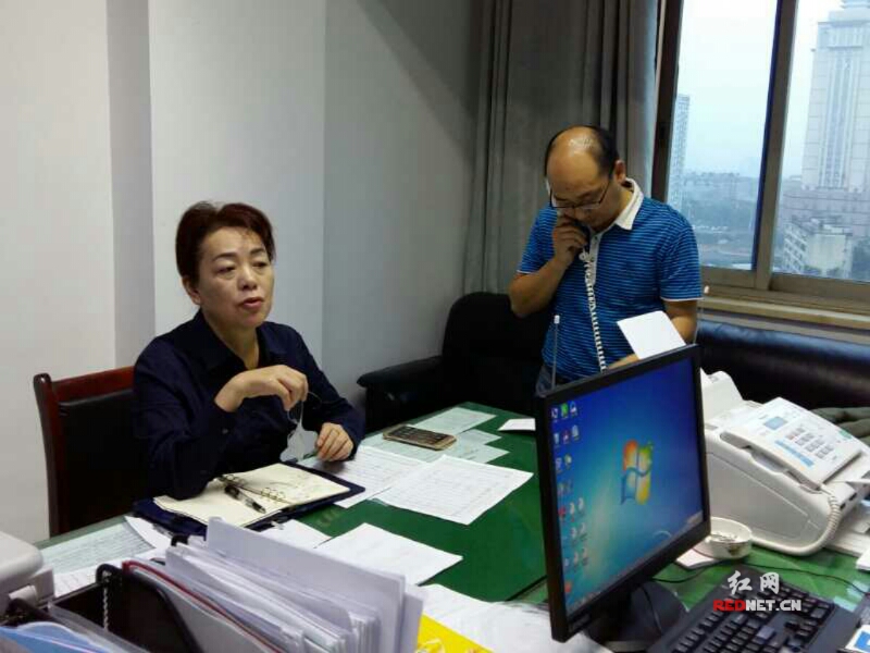 湖南省民政厅厅长唐白玉(中)、副厅长邓磊(右)与厅救灾处的同志在会商灾情。祝林书 摄