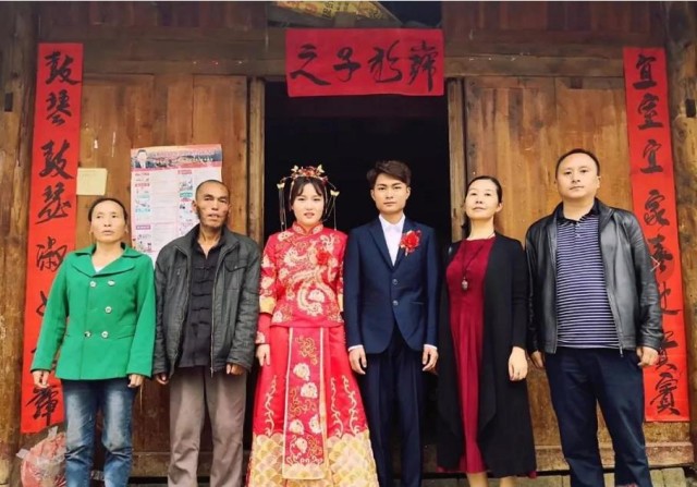 新娘唐晓雪是花垣本地人,新郎余可平是四川自贡人。二人均在福州一家职业技术学校学习厨师时,相互认识并开始恋爱,毕业后各自在当地找到了工作。
